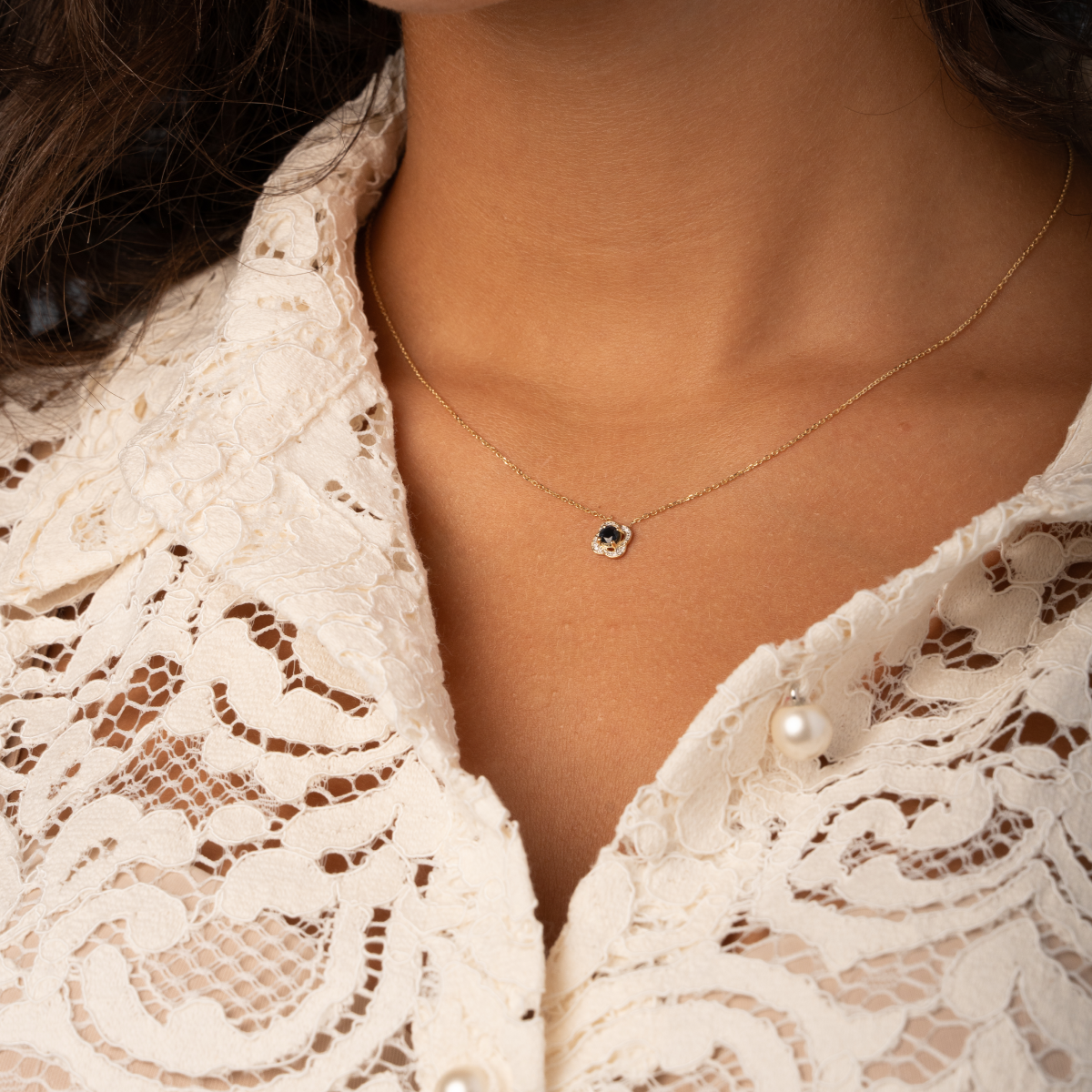Ce collier en or jaune 18 carats présente un pendentif élégant et raffiné, mettant en valeur un saphir rond d'un bleu profond, sublimé par un halo étincelant de diamants. L'éclat chaleureux de l'or jaune contraste à merveille avec le bleu intense du saphir, créant un bijou d'une élégance intemporelle. Sa chaîne, d'une longueur ajustable de 42 à 38 cm grâce à un anneau intermédiaire, permet de l'adapter à vos envies.
